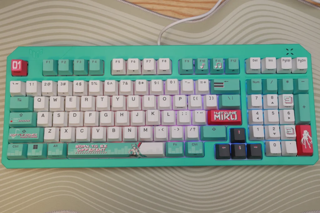 エンターキーにはMIKUの印字があり、Escキーには初音ミクのボーカロイドナンバーの01が印字されているのが特徴。
