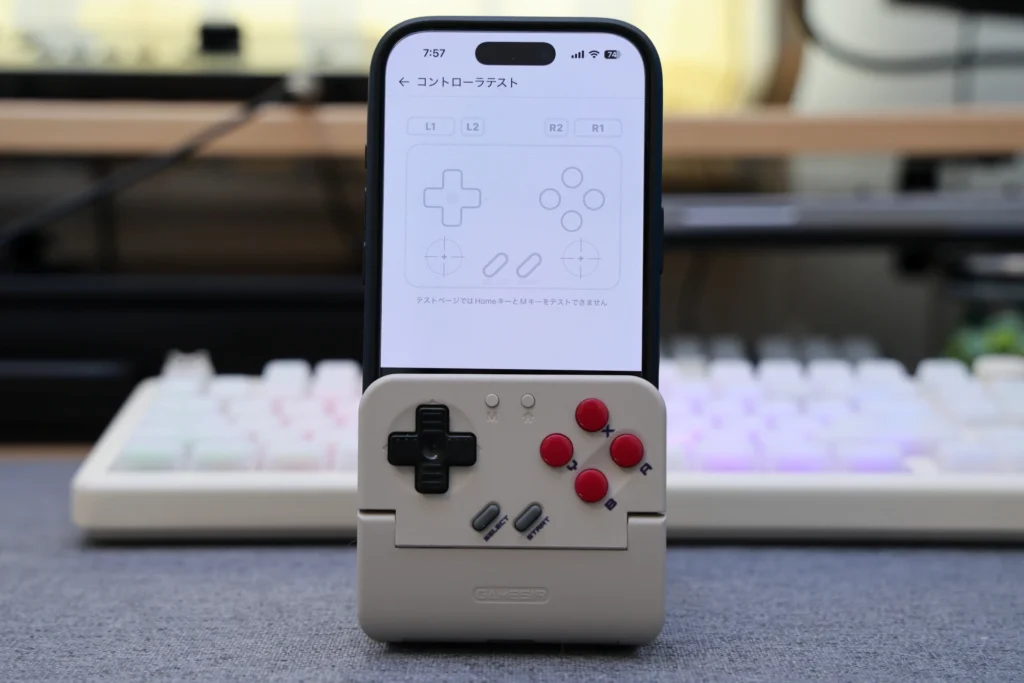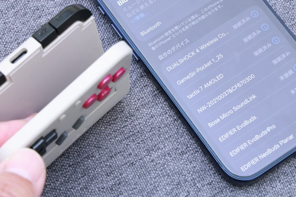 実際にゲームをプレイしてみると、操作の遅延はほとんど感じません。2Dアクションゲームでキャラクターを操作していても、ボタンを押してから画面に反映されるまでのタイムラグはほぼゼロという感覚があります。Bluetooth接続ながら、レトロゲームのプレイには十分なレスポンスです。