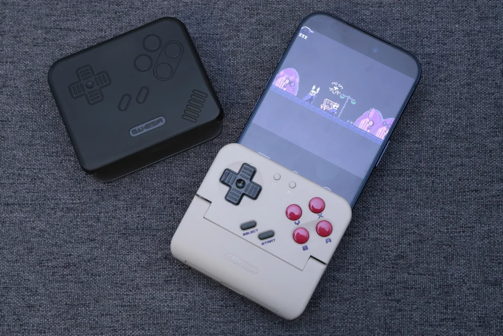 クリーム色のボディに赤いABXYボタンという配色は、ゲームボーイ世代にはたまらないデザインです。レトロゲーム機のような見た目でありながら、スマホと組み合わせて最新のエミュレーター環境で遊べるというギャップが魅力的。