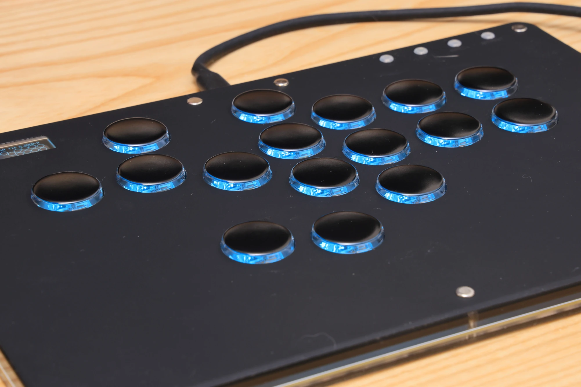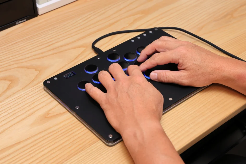 レバーレスというのは、アーケードコントローラーのレバー部分をボタンに置き換えたコントローラーのこと。レバーを使わずにボタンだけで操作することで、コマンド入力を正確に行うことができます。