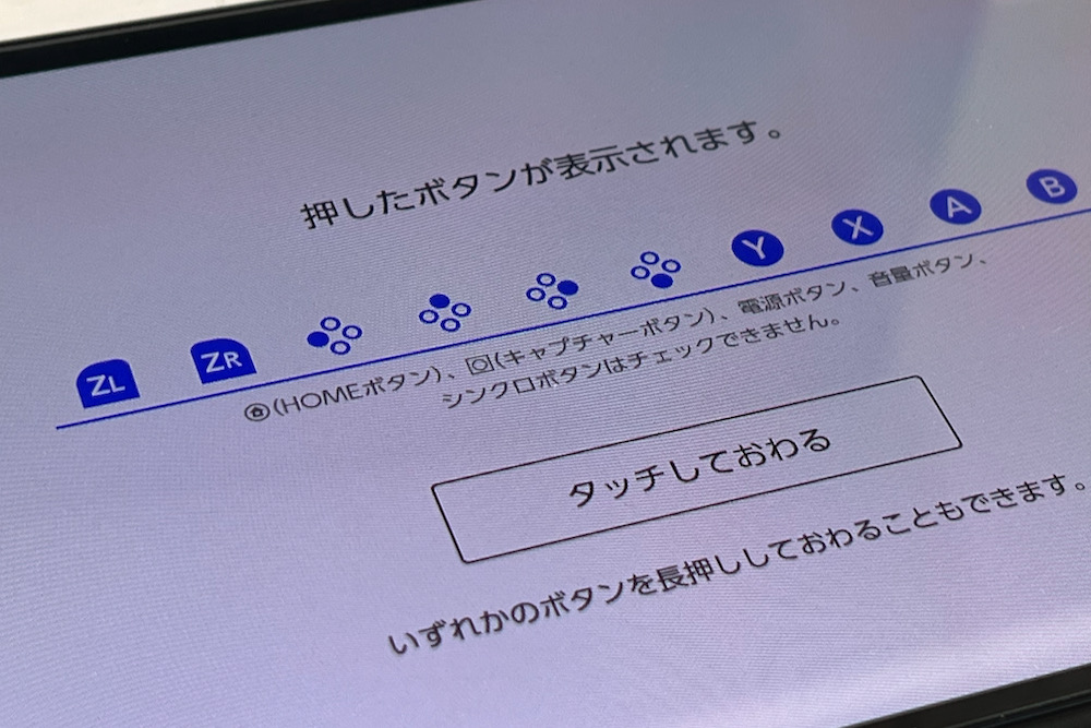 続いて「ボタンの動作チェック」を選択肢、動作確認したいコントローラーのボタンを押します。