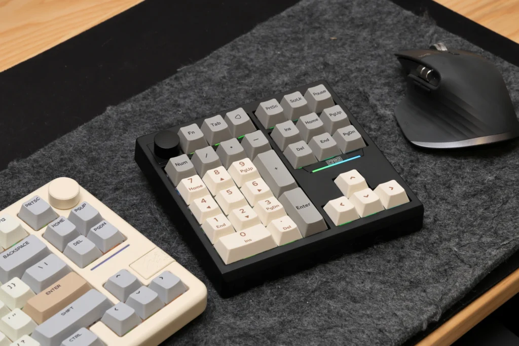 Epomaker Galaxy70には、テンキーなどがありません。より作業で使いやすくするには、別途テンキーを購入し、キーボードの左側に置くのがおすすめです。コンパクトレイアウトのマウスとの距離の近さという利点を活かしながら、テンキーが使えます。