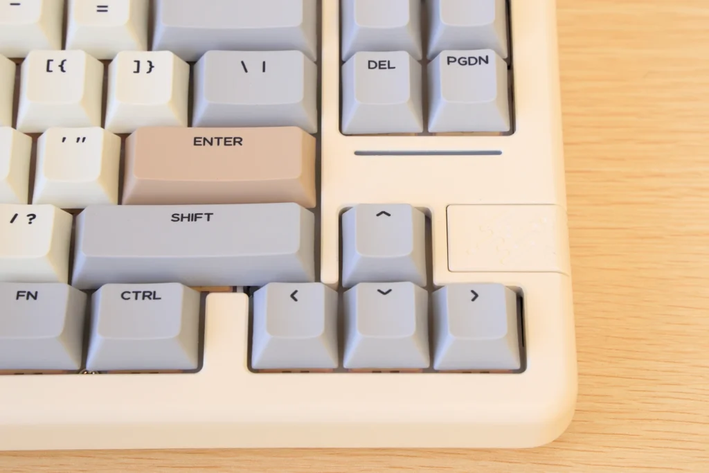 75%キーボードでは縦一列に並びがちなエンターキー右横のキーが、TKLレイアウトのように格子状に並んでいるのが特徴的です。TKLキーボードからの移行において、違和感を感じにくくなっています。