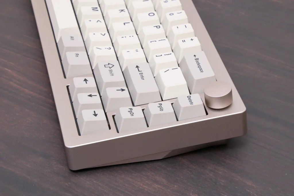 重厚なフルアルミケースに、肉厚なPBTダブルショットキーキャップなど、品質が非常に高く、高級感があります。