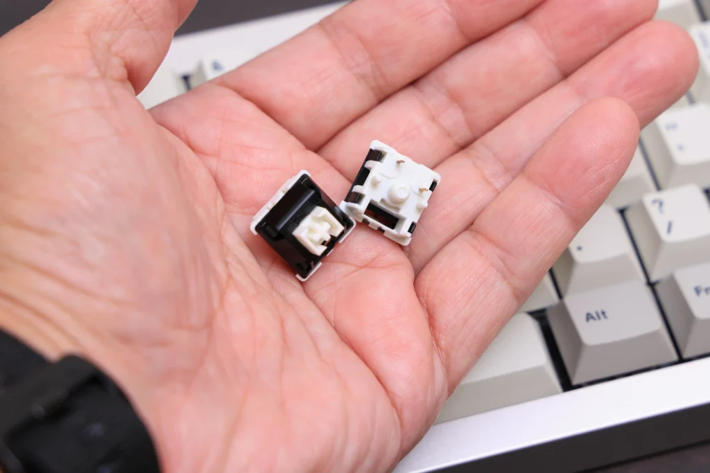 Zebraスイッチは、押下圧が40gfと比較的軽いのが特徴です。底付き時の押下圧でも45gfなので、メカニカルスイッチのなかでもやや軽めといったところ。