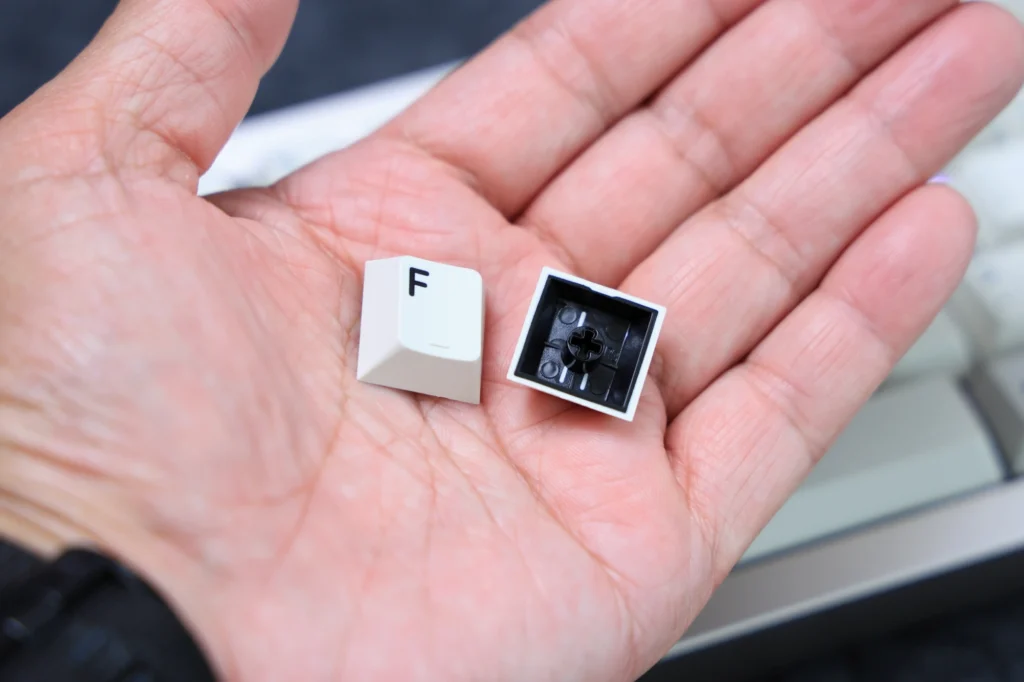 そして、キーキャップは肉厚なPBT素材を採用しています。摩耗に強い素材で長期間使ってもテカリにくく、そのうえABS素材よりも打鍵音が低いコトコトとした音に近づくのが良いところです。