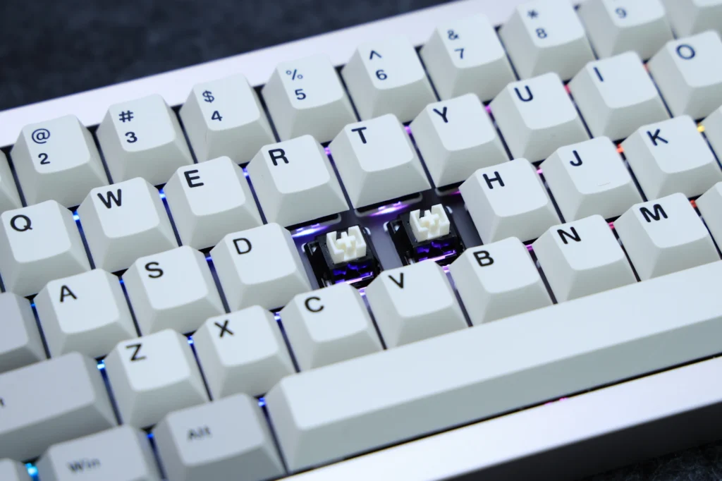 さらに、65%のUS配列なのも特徴的です。65%キーボードということで、アローキーとDeleteキー、PgUp、PgDnが独立しているのが良いところ。60%レイアウトでは使いにくいもののコンパクトなレイアウトが良いという方には、最適なキー数です。