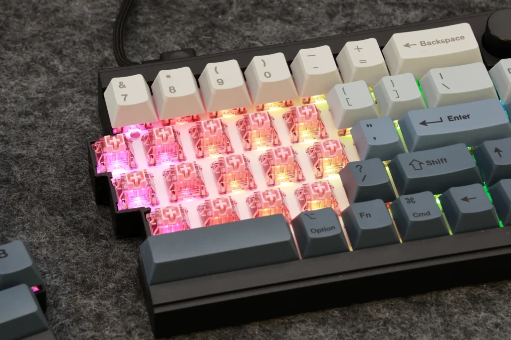 Epomaker Split65のFlamingoスイッチ搭載モデルは、軽い打鍵感が特徴です。