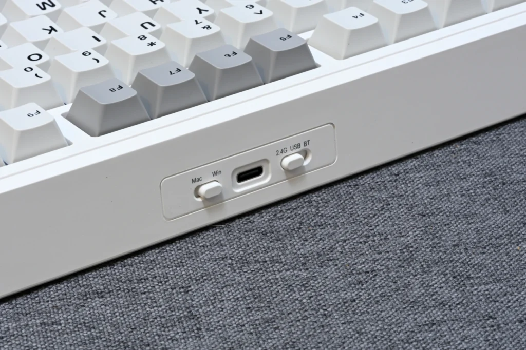 接続方式はトライモードに対応しており、2.4GHz・Bluetooth・USB-C有線の3パターンを切り替えながら最大5台のデバイスに同時ペアリングできます。1台のキーボードでメインPC・ノートPC・タブレットを使い分けられるので、デスク上のケーブルや切替機も減らせます。