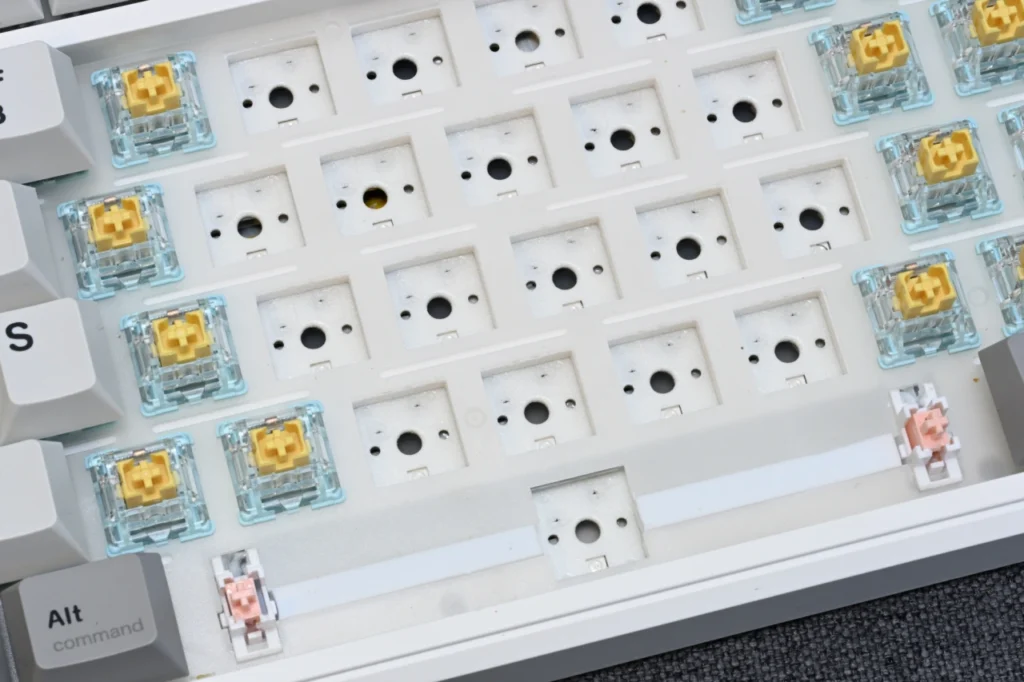 EPOMAKER TH80 V2はこのガスケットマウントに加え、5層構造の吸音材を内蔵しています。
