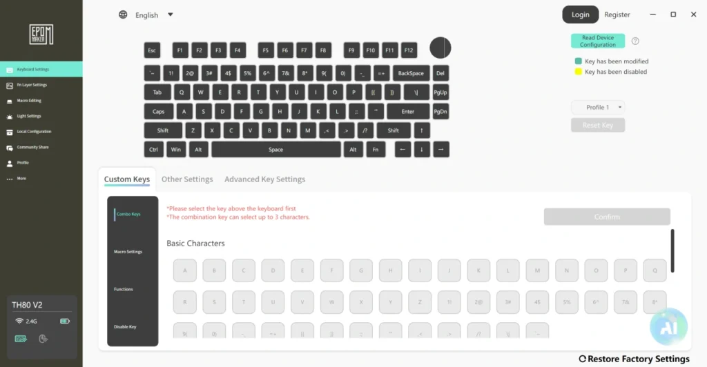 EPOMAKER TH80 V2の場合はVIAに対応しておらず、キーマップやマクロを変更するときに専用のEPOMAKER Driverをインストールする必要があります。