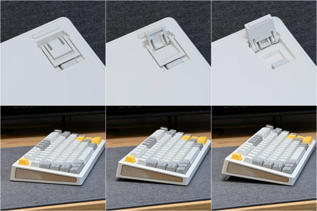 EPOMAKER TH80 V2はキックスタンドを使わない状態でも前面20mm・背面34mmと、元々角度が付いた設計です。そのためキックスタンドを最大まで上げると、傾斜はかなり強めになります。