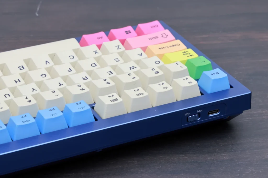 ※ 今回レビューしているのは、カスタマイズ済みの個体です。 スイッチはLCET SAKURAに、キーキャップは昇華型染色PBTキーキャップセット(虹色)に換装しています。