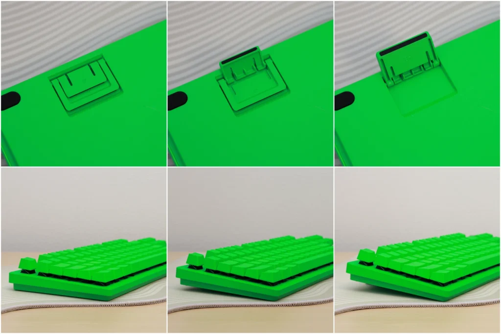 背面には2段階のチルトスタンドが搭載されています。収納・1段・2段の3段階で角度を調整でき、好みのタイピング姿勢に合わせられます。