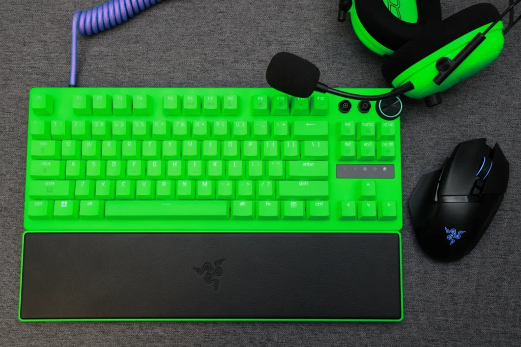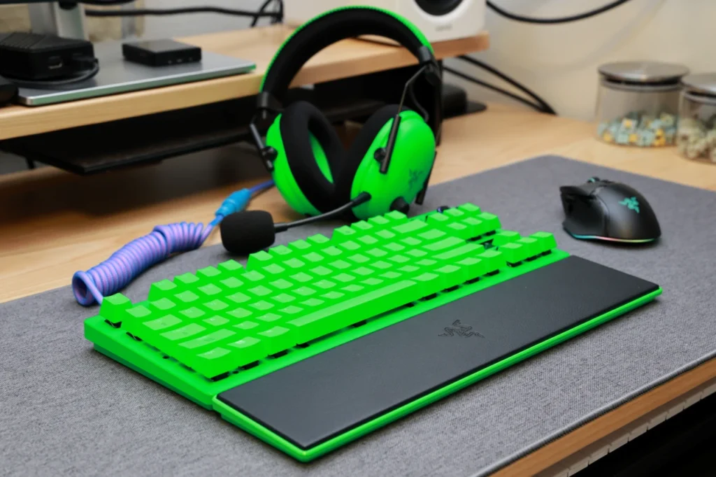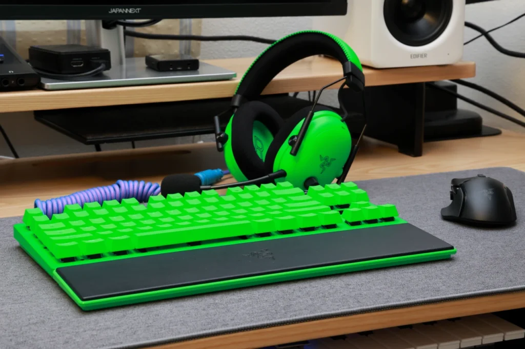Esports Green Editionは、Razerのブランドカラーを全面に押し出したモデルで、BlackShark V3 Proなどと組み合わせたときのデスク映えはかなりのものがあります。