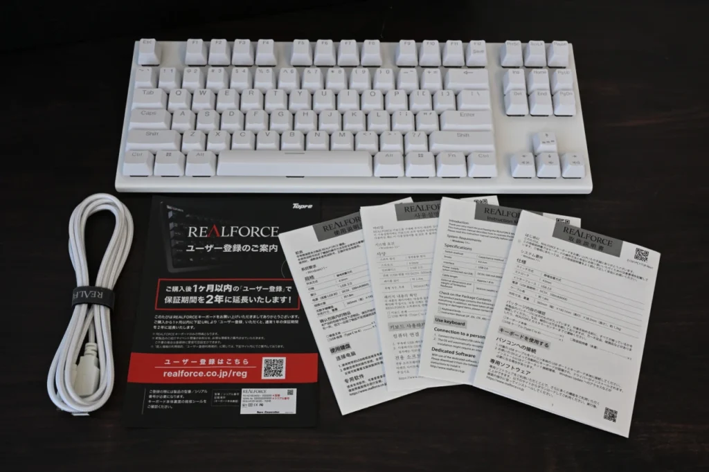 ここからは、REALFORCE GX1 Plus ホワイトのスペックやデザイン、付属品、そしてメーカーやGX系の歴史について紹介していきます。