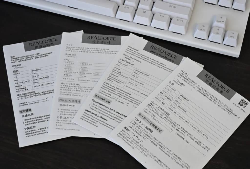 マニュアルは4言語に対応しており、海外ユーザーも意識した構成です。