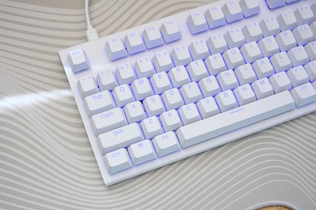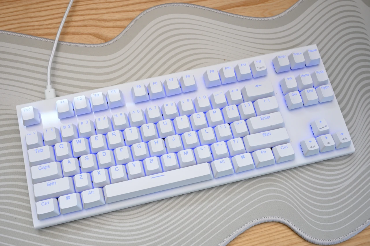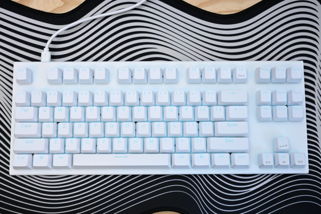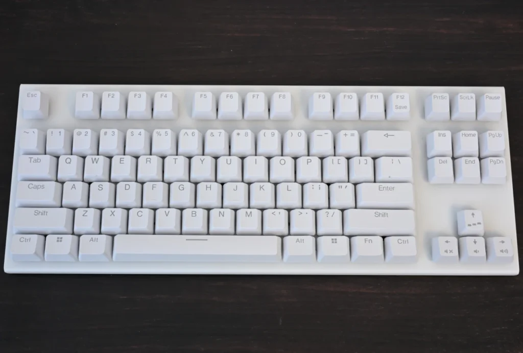 英語配列87キーのテンキーレス。 ザ・TKLと言えるオーソドックスな配列です。 キー操作でつまずくことが一切なく、慣れ親しんだキーボードという安心感があります。