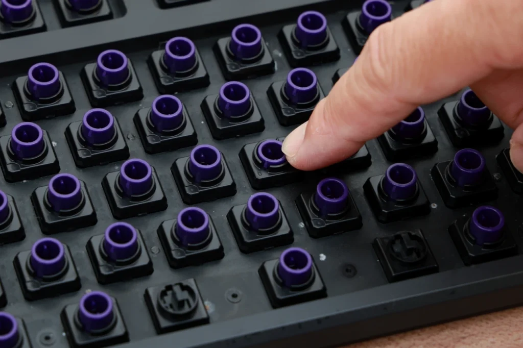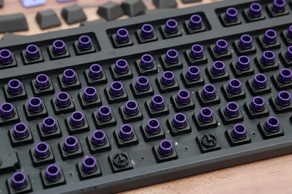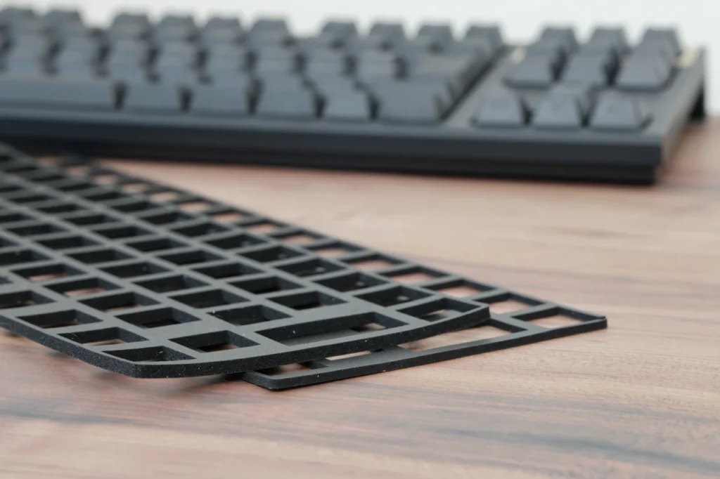 スイッチの下に敷くことでキーストロークの底打ち位置が浅くなり、打鍵感や静音性が変わります。