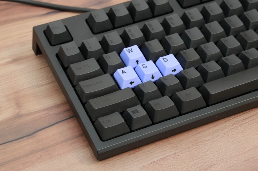 付属のWASDキーキャップを装着すれば、視認性と手触りの面でもゲーム操作がしやすくなります。 東プレがWASDキーキャップを同梱しているのは、ゲーム用途をしっかり意識している証拠です。