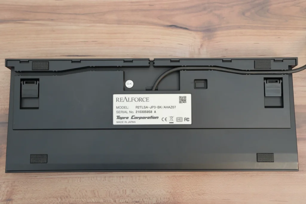 R2世代のREALFORCEは有線USB接続のみに対応しており、Bluetoothには対応していません。 ケーブルも着脱不可のため、取り回しの自由度は限られます。