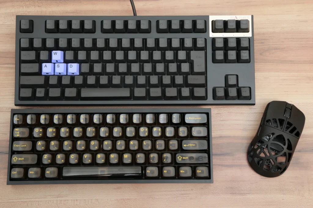 60%や65%キーボードほどコンパクトではありませんが、F列が独立しているのでゲーム中にファンクションキーを使う場面でもレイヤー操作が不要です。