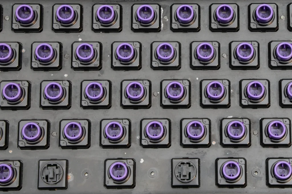 キーを押し込むと内部の電極同士が近づき、一定の距離に達した時点で静電容量の変化を検知して入力が認識されます。 メカニカルスイッチのように金属接点が擦れ合わないため、物理的な摩耗がほとんど発生しません。