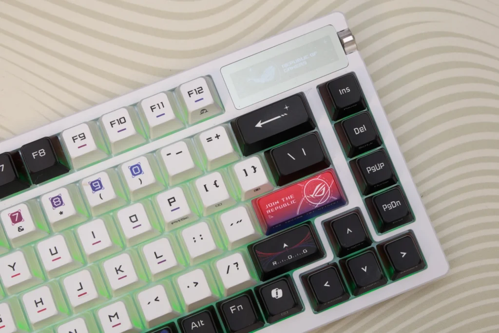ROG Azoth X Gaming Keyboardのキーキャップは、3面半透過仕様の昇華印刷PBTキーキャップです。
