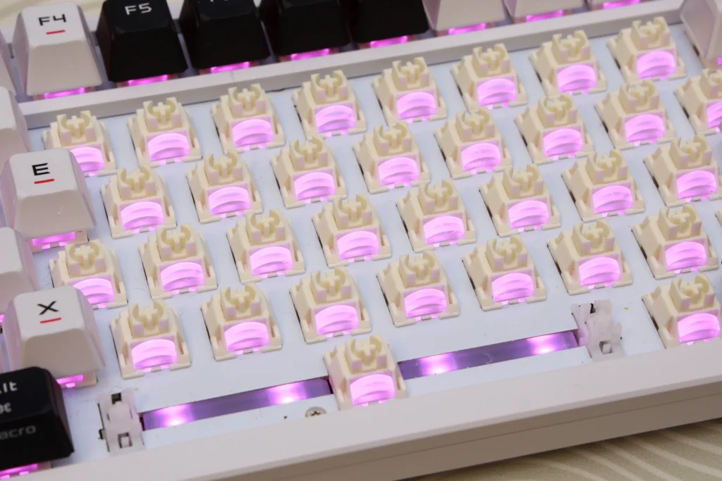 RGBライティングを綺麗に拡散する仕様です。印字は透過しませんが、光り方が非常に綺麗で魅力的だと言えます。