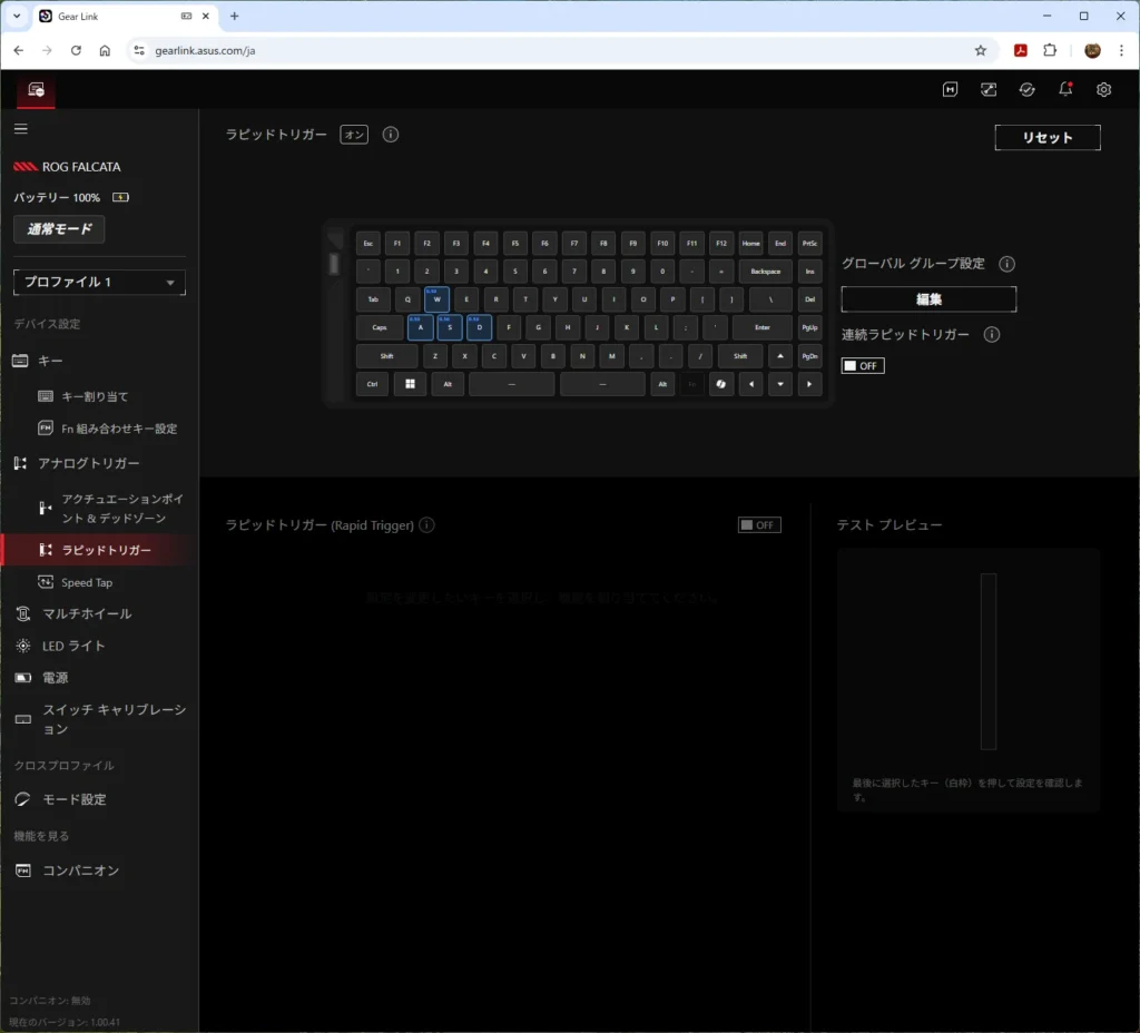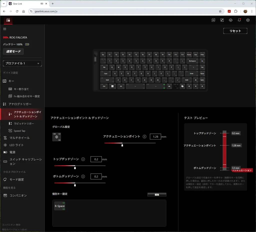 ラピッドトリガーというのは、キーのオンオフの位置を調整する機能のことです。