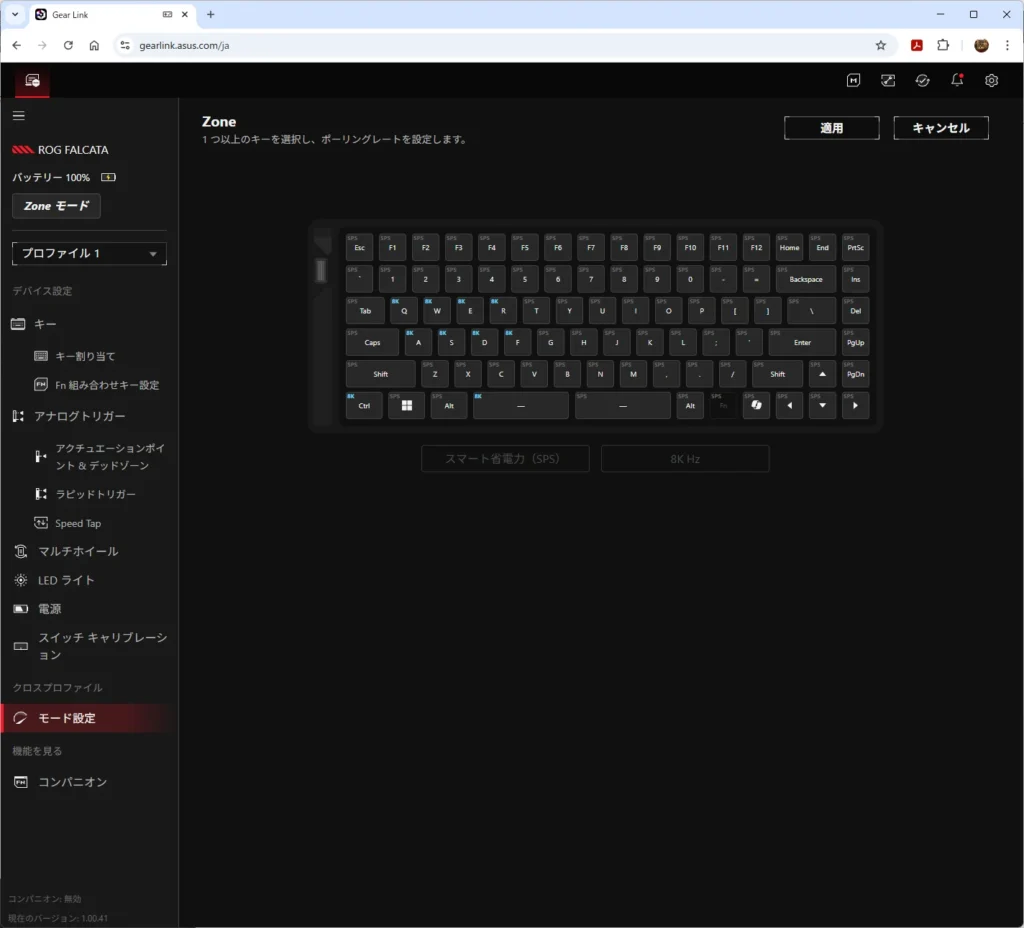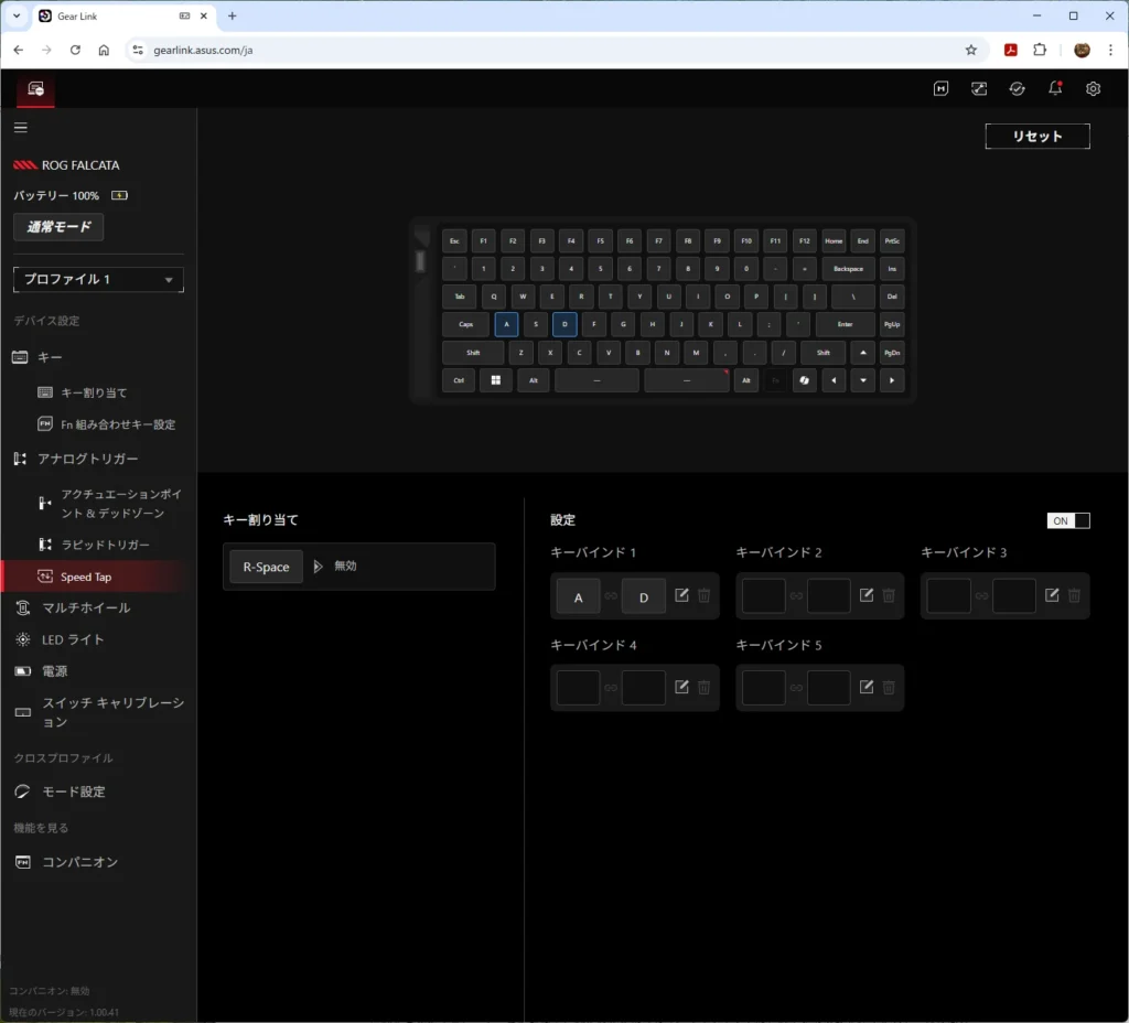 以上が、ROG Falcata Gaming Keyboardの基本的なスペックです。
