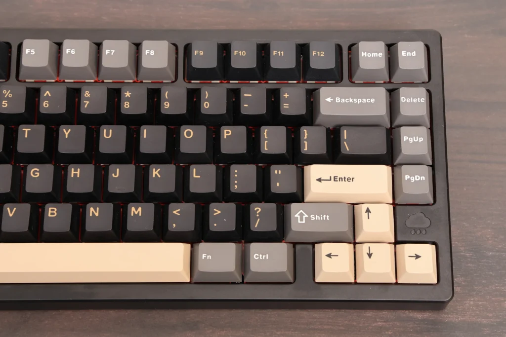 たとえばブラックであれば、機能キーはグレーに白文字、英数字キーはブラックにブラウンの文字になっています。スペースバー、エンターキーなどはクリーム色です。