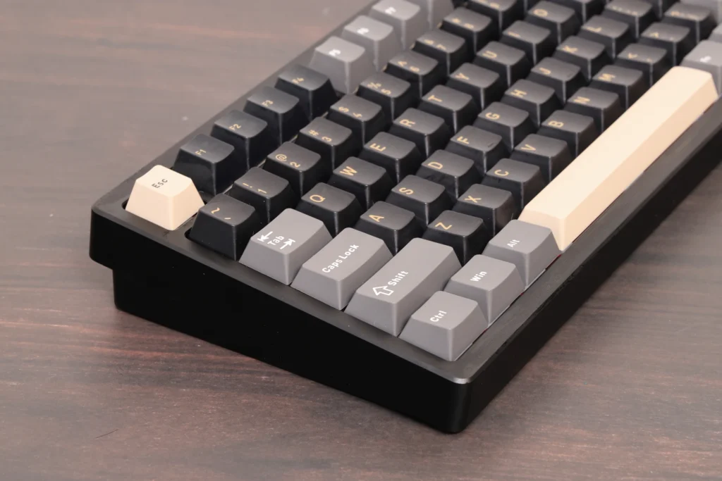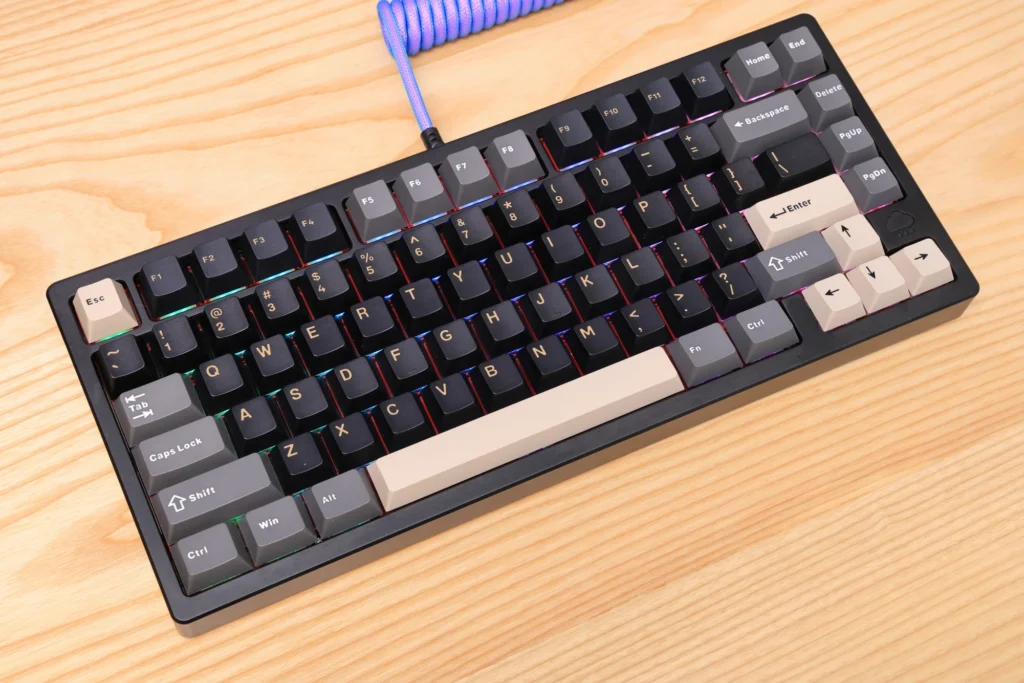 75%の英語配列キーボードで、キー数が少ないのが特徴。それでいて、アローキーとファンクションキー、デリート、ホーム、エンド、PgUp、PgDnが備わっています。