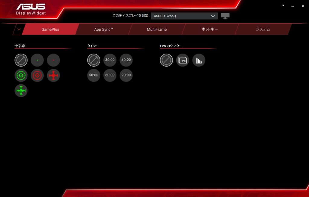 ROG Strix XG256Qは、GamePlusに対応しています。これは、ゲーマー向けのさまざまなアシスト機能の総称です。