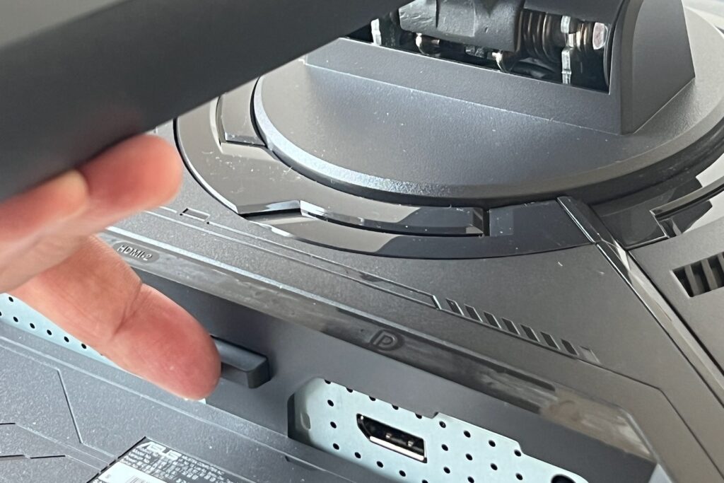 なお、スタンドの取り外し方ですが、下の写真のように取り外しボタンがあり、このボタンを押すと、スタンドが取り外せます。