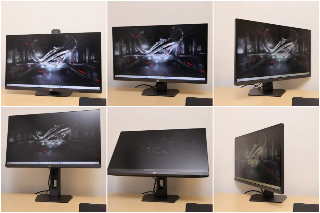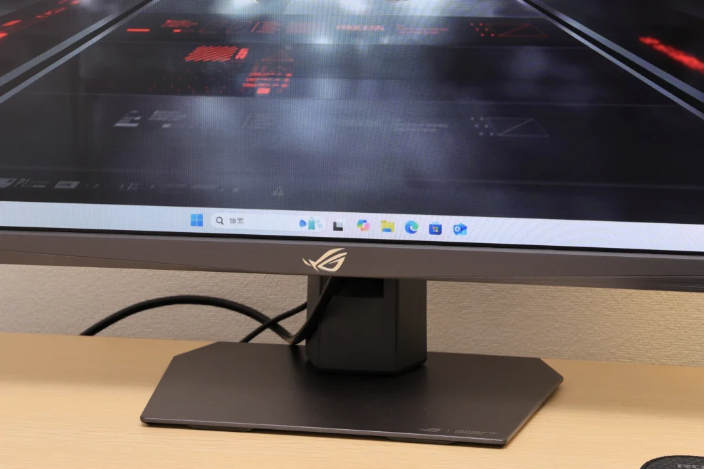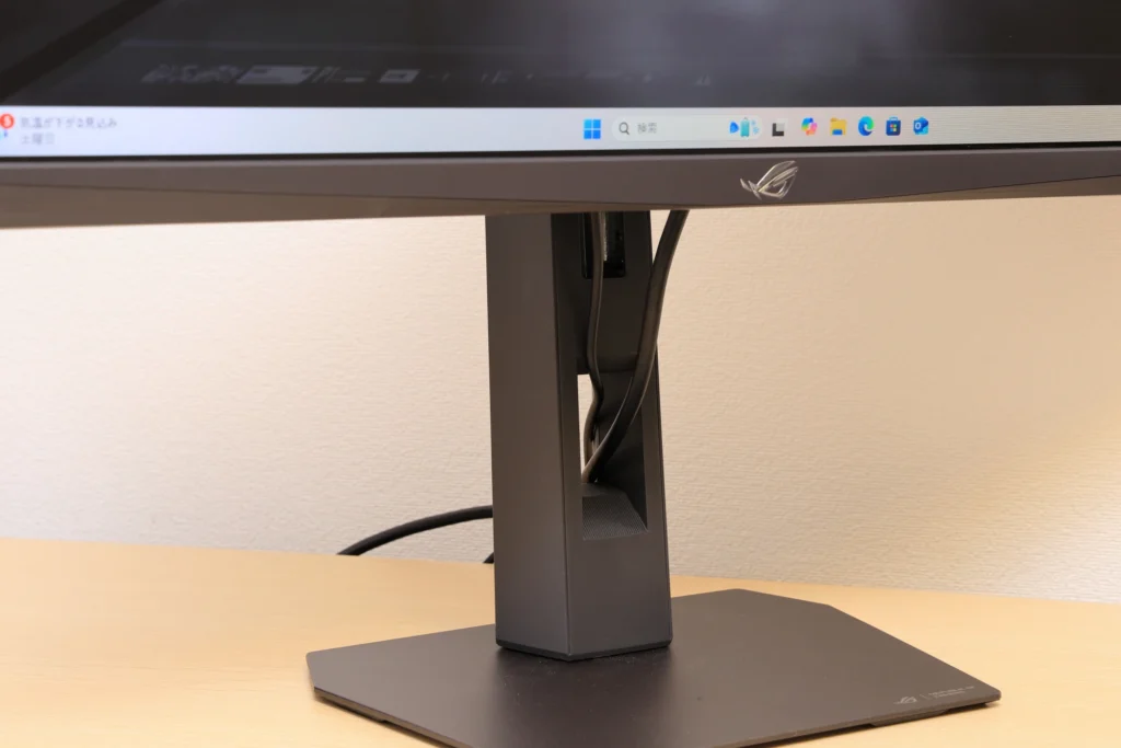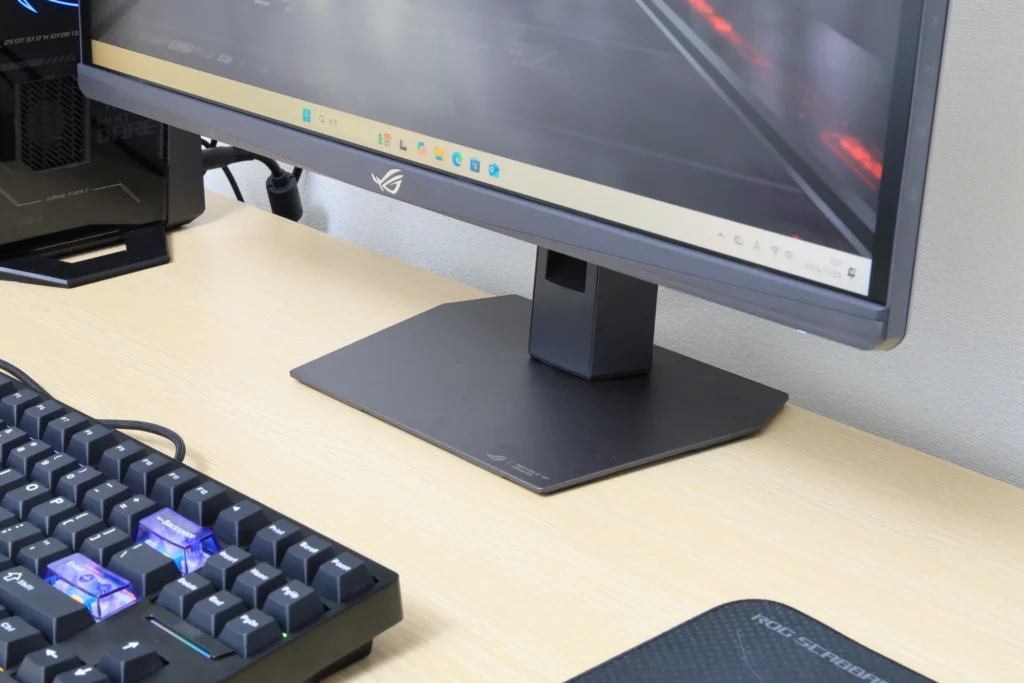 さらに、ROG Strix XG248QSG Aceのスタンドは、デスクとの接地面積が小さいのが魅力的。デスク上の幅をあまり取らず、設置できます。