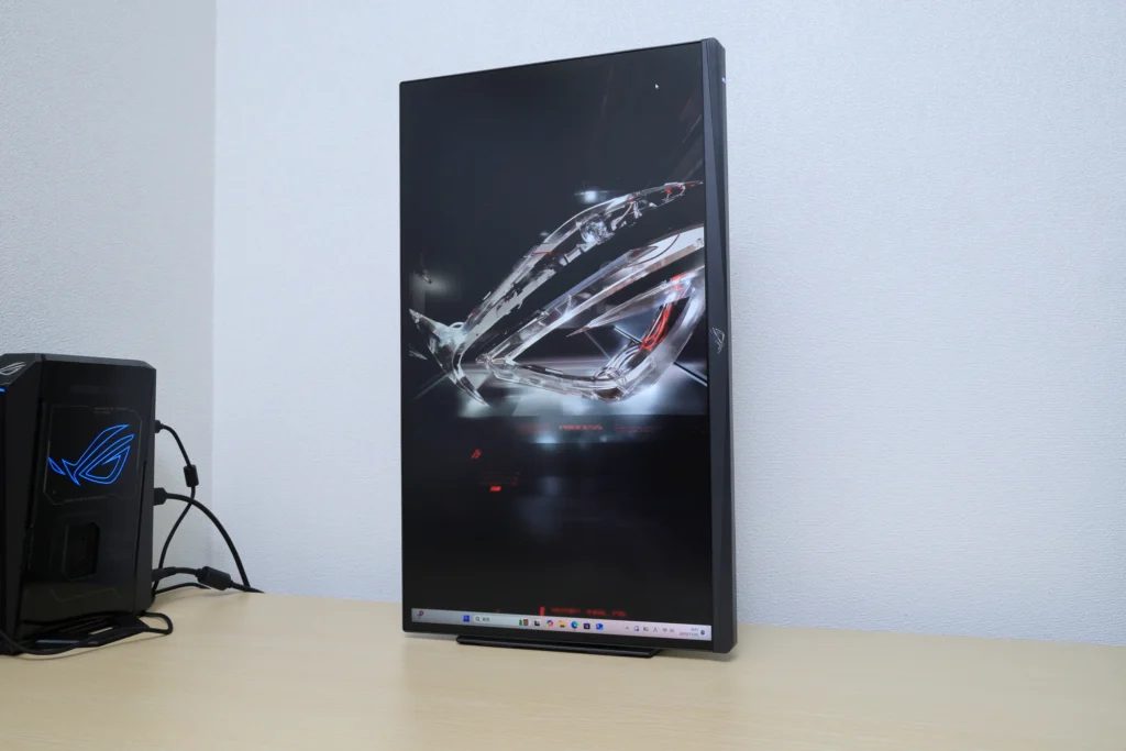 これまでのROGモニターと比較して、スタンドがコンパクトになり、省スペースでも配置できる良いになりました。