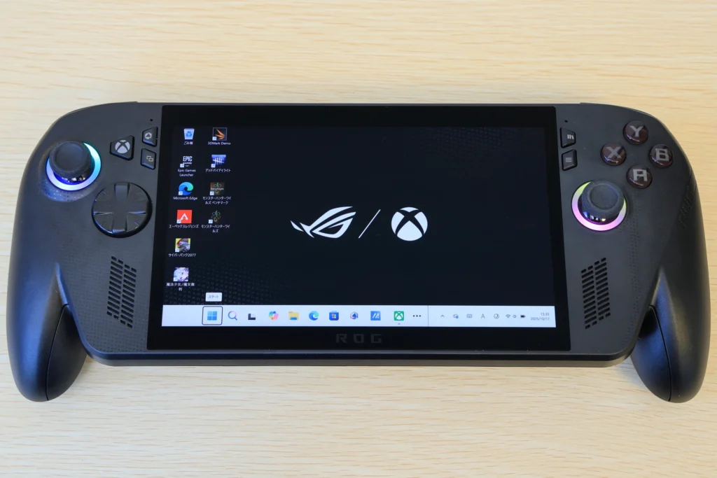 ROG Ally Xでは、ROGシリーズらしいデザインが特徴的でした。