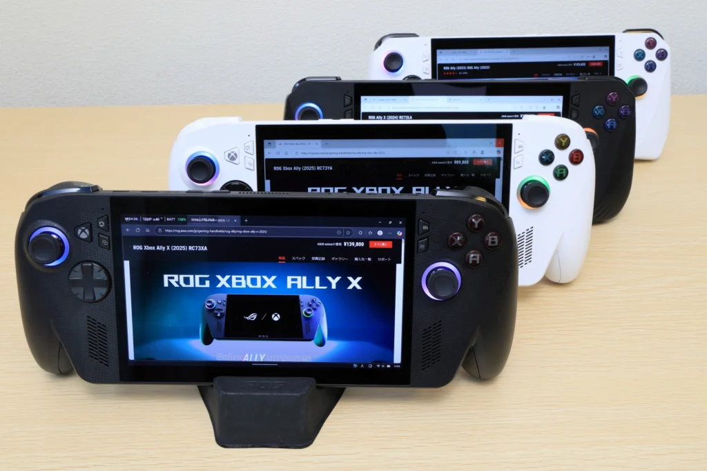 最初に発売されたのは2023年の元祖モデル。そのあと2024年版ASUS ROG Ally Xと、2025年に追加されたROG Xbox AllyおよびROG Xbox Ally Xなど、モデル数は決して少なくはありません。