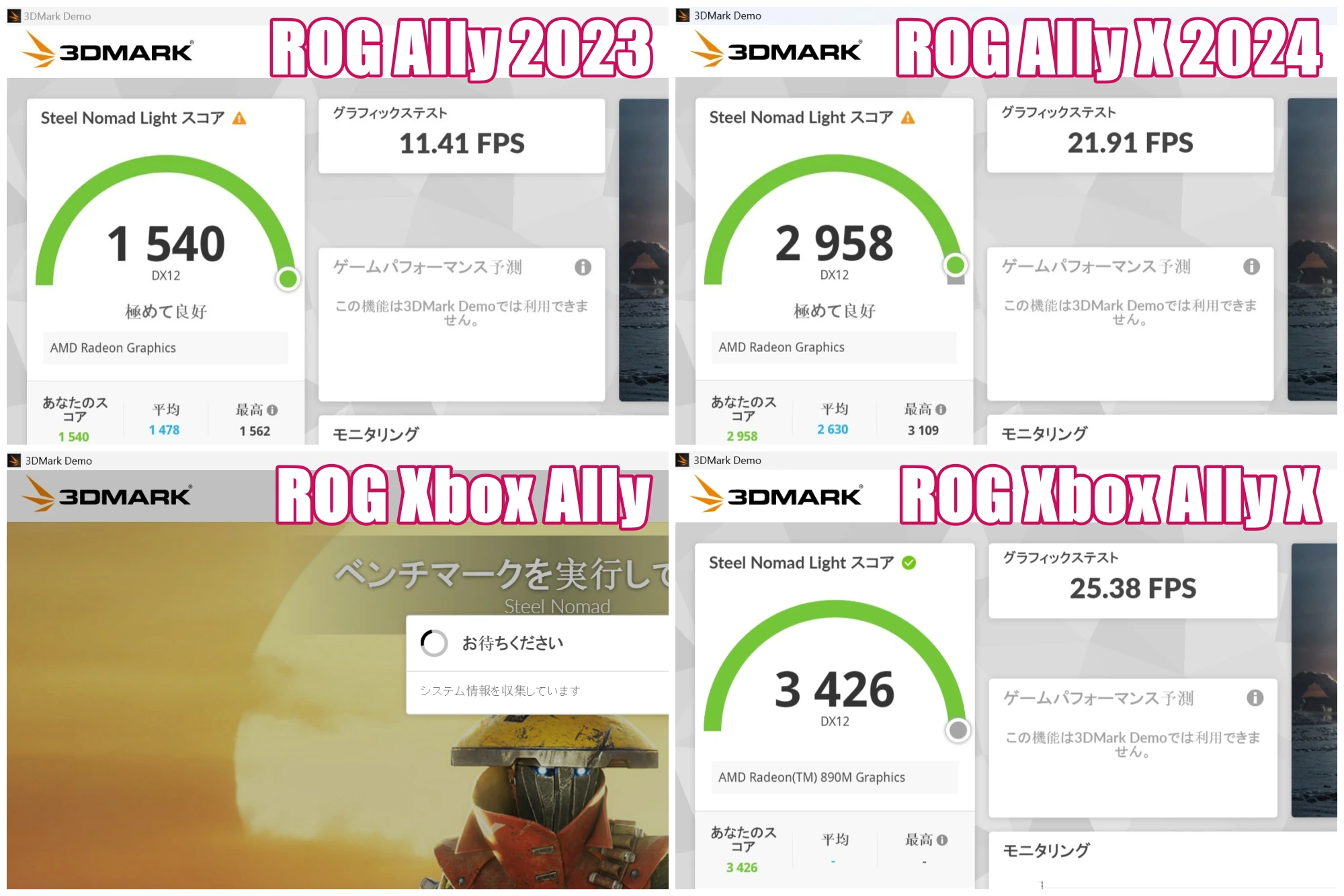 ただ、ROG Xbox Ally Xのほうが高いです。RTX3050と同等レベルの性能です。