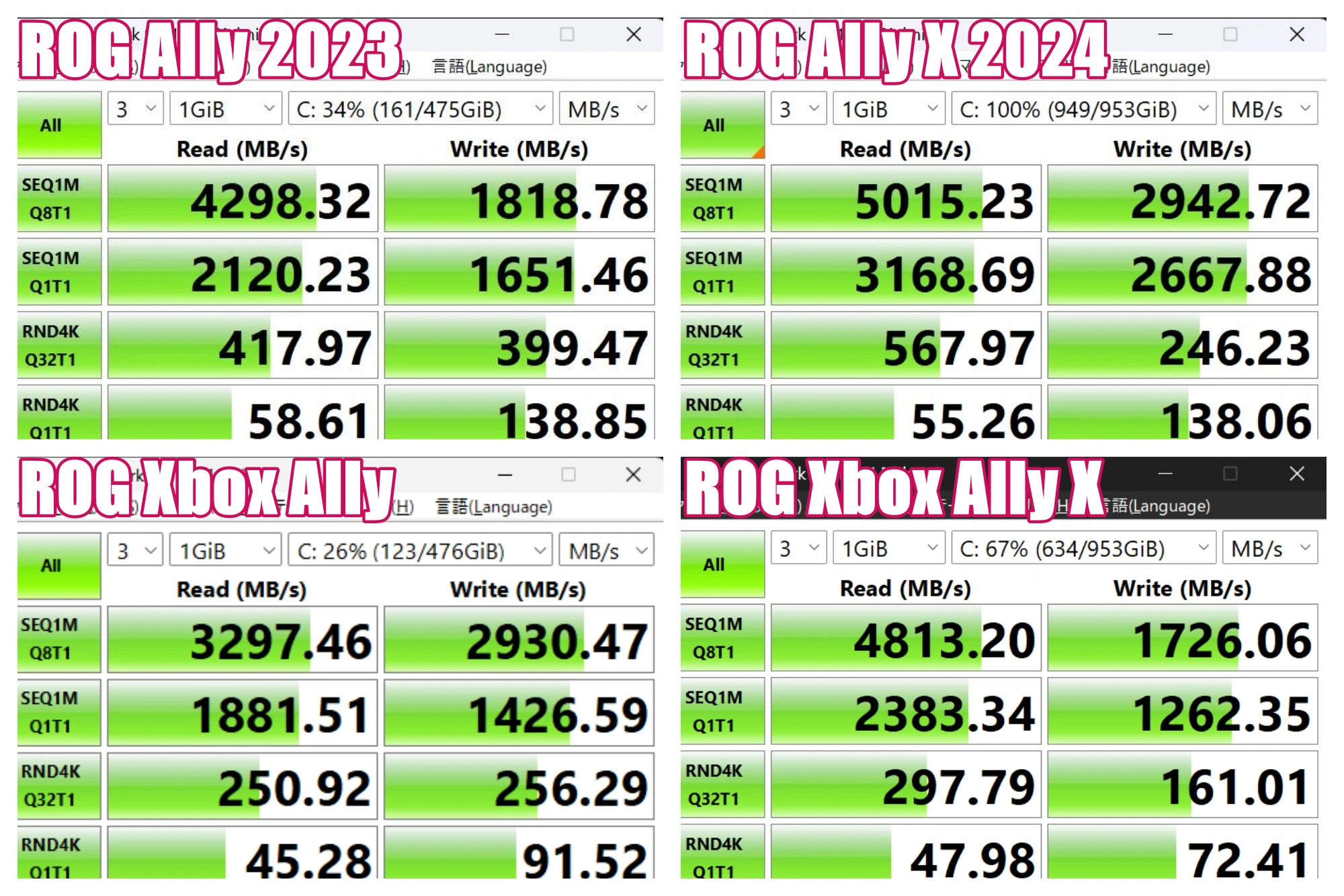ストレージについても、ROG Xbox Ally Xのほうが大きいです。