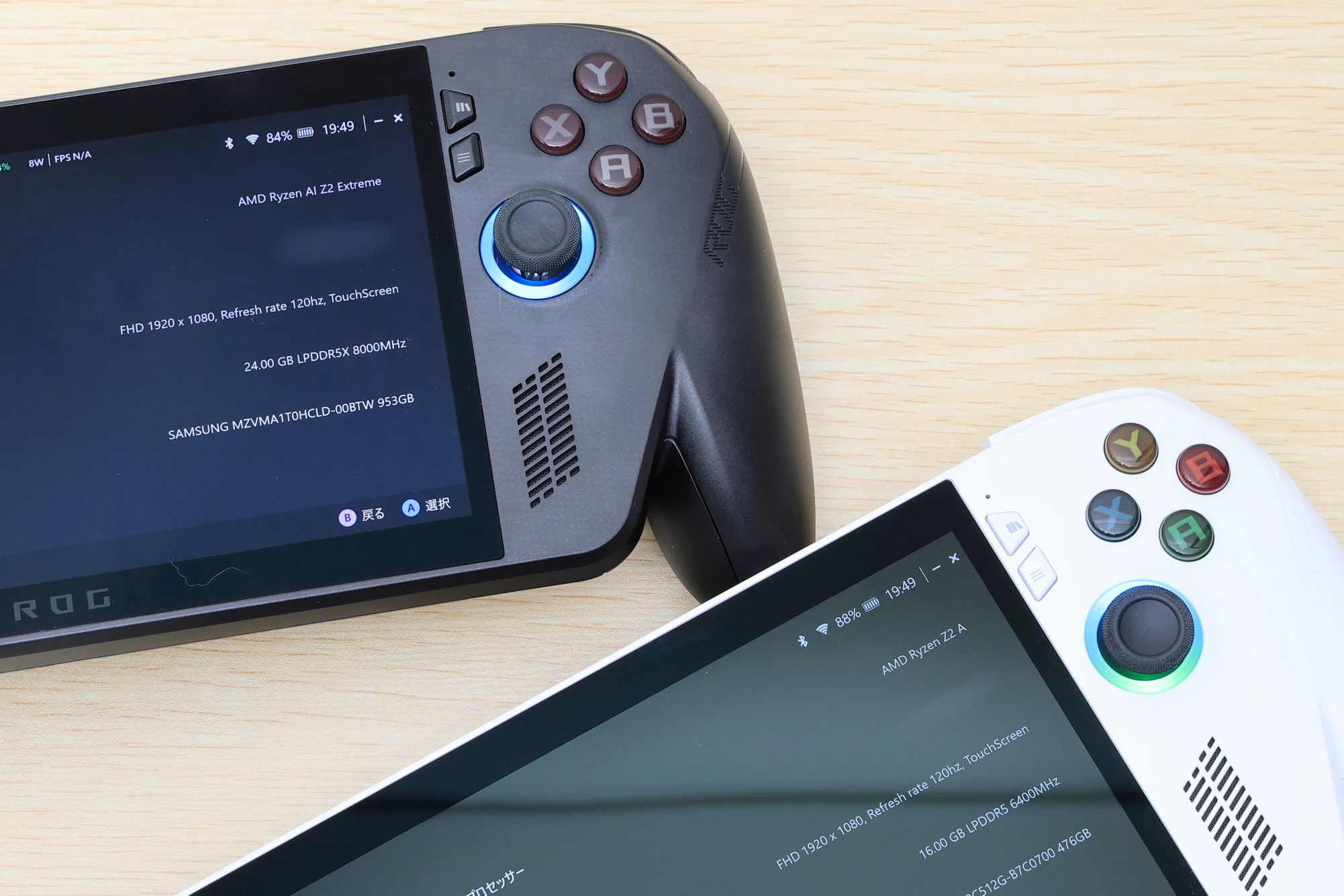 ROG Xbox Ally XもROG Xbox Allyも、ディスプレイは同じです。