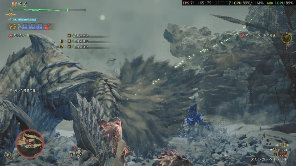 実際にプレイしていても、FHDの高設定(72fps)であればモンスターの動きも滑らかで、アクションにも十分対応できるフレームレートが出ています。