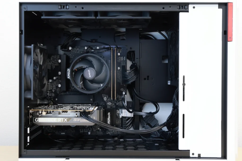 とはいえ、BTO PCは完成品として最適化されたバランスで出荷されるのが利点でもあります。 標準構成のまま使い始めて、後からメモリやストレージだけ増設するというスタイルであれば、大きな問題にはなりません。