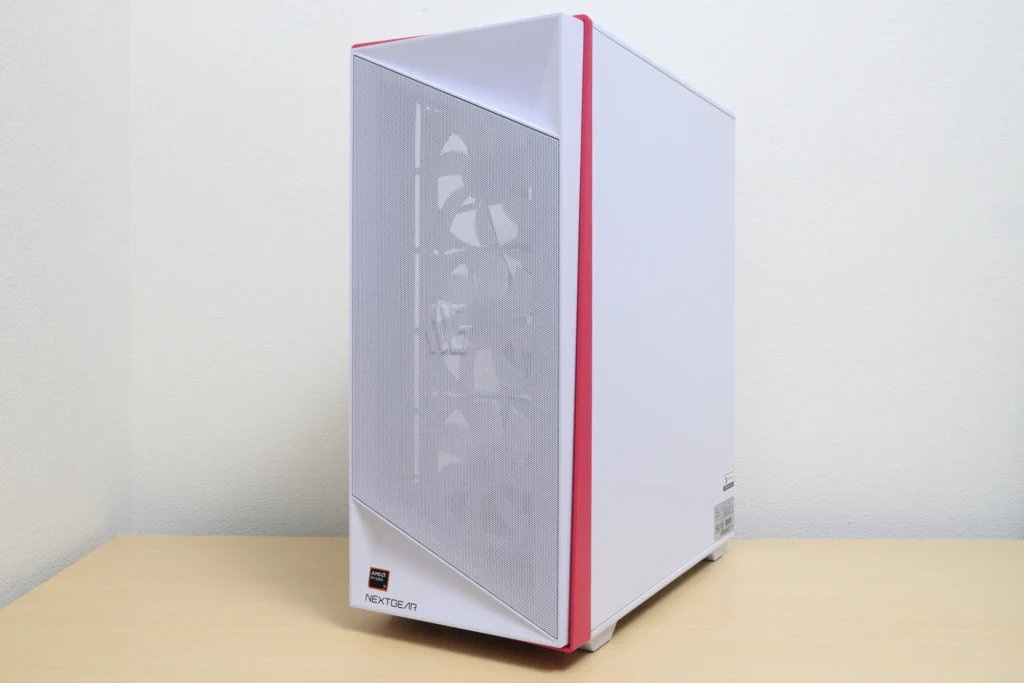 NEXTGEAR HD-A7G70は、比較的スリムなフルタワーケースを採用しています。新デザインのカッコよさと実用性が両立されたケースで、比較的扱いやすいです。