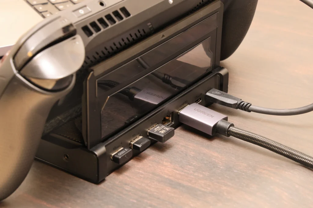 そのうえ、ROG Allyなどのハンドヘルドデバイスのスタンドにもなるのが良いところです。ハンドヘルドデバイスおよびノートパソコンで使えるドックを探している方には、適した製品だと言えます。