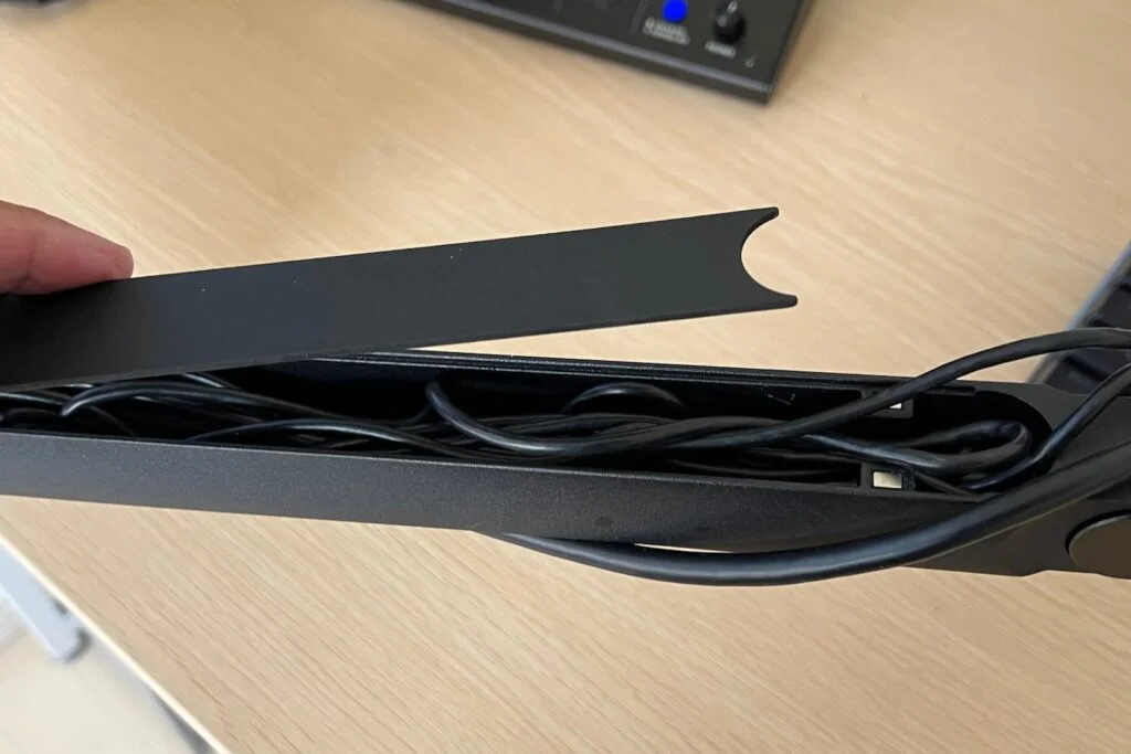 この作りのおかげで、分割して上アームのみで使うことも可能です。デスクの奥から出す場合は長さが足りなくなりますが、側面に付ける場合はこうして短くしたほうが便利なケースもあります。