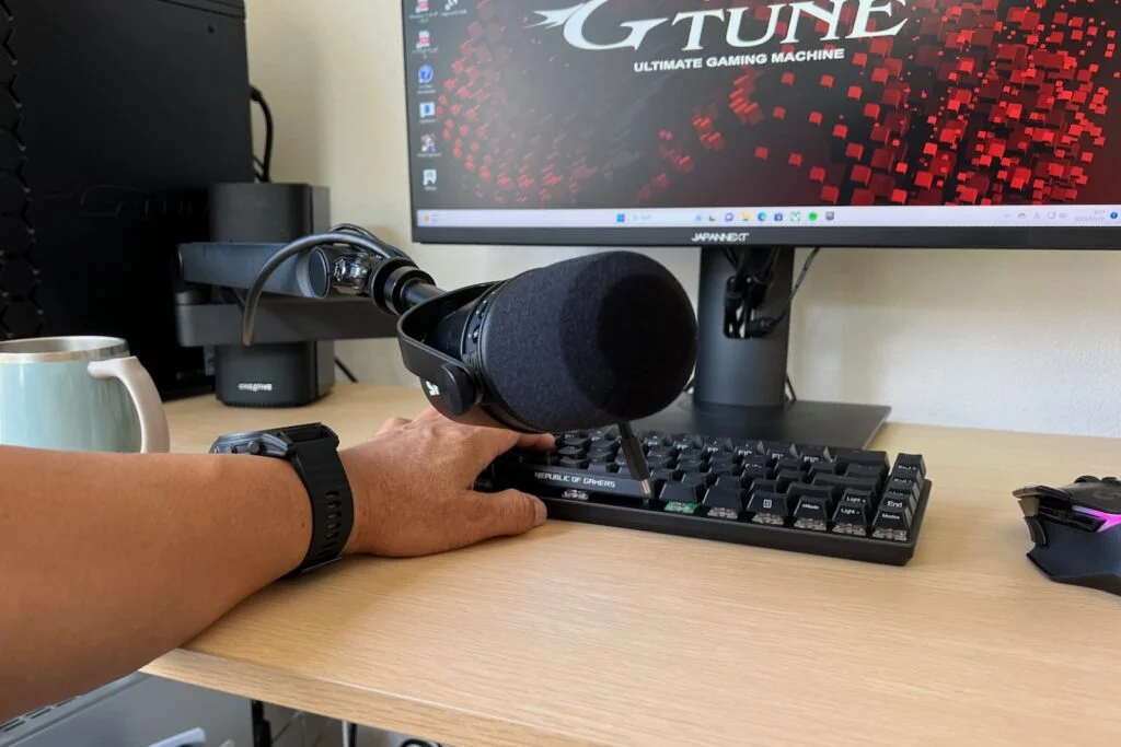 また、マイク下に手を入れてキーボード操作は可能なスペースは確保できますので安心ください。
