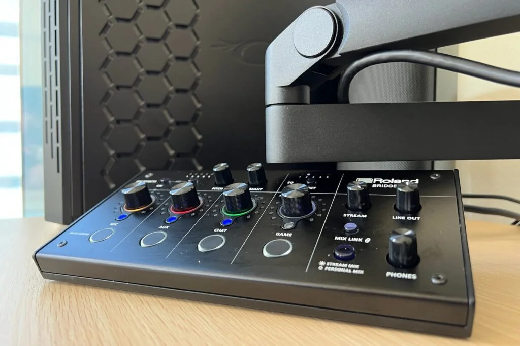なお私が愛用しているミキサー「Roland BRIDGE CAST」はギリギリ干渉するかしないかの高さでした。