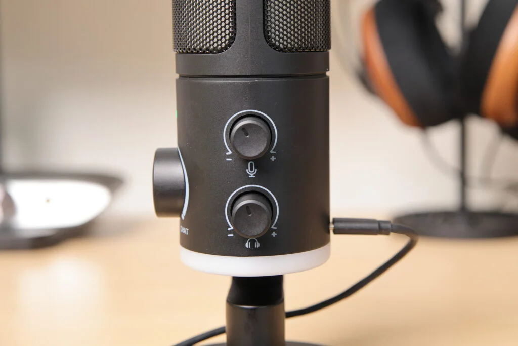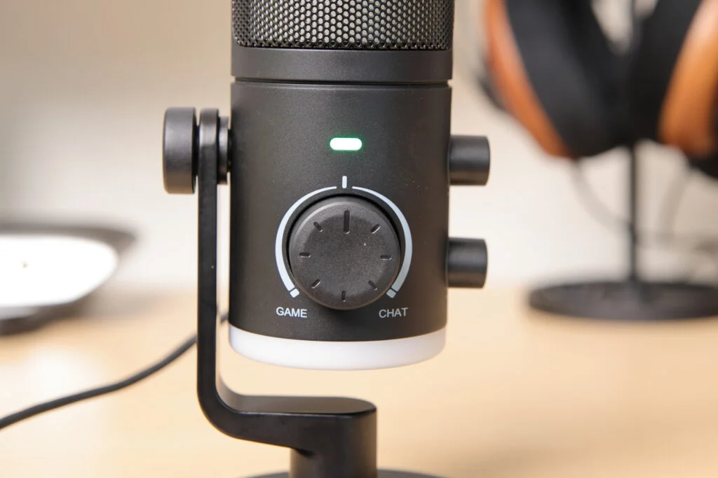 FIFINE AMPLIGAME AM6はゲームでのボイスチャット用途を主としたゲーミングマイクで、2024年に発売されたばかりの新作。ノイズキャンセリング機能やゲーム音とチャット音のバランス調整つまみなど、面白い機能が付いています。
